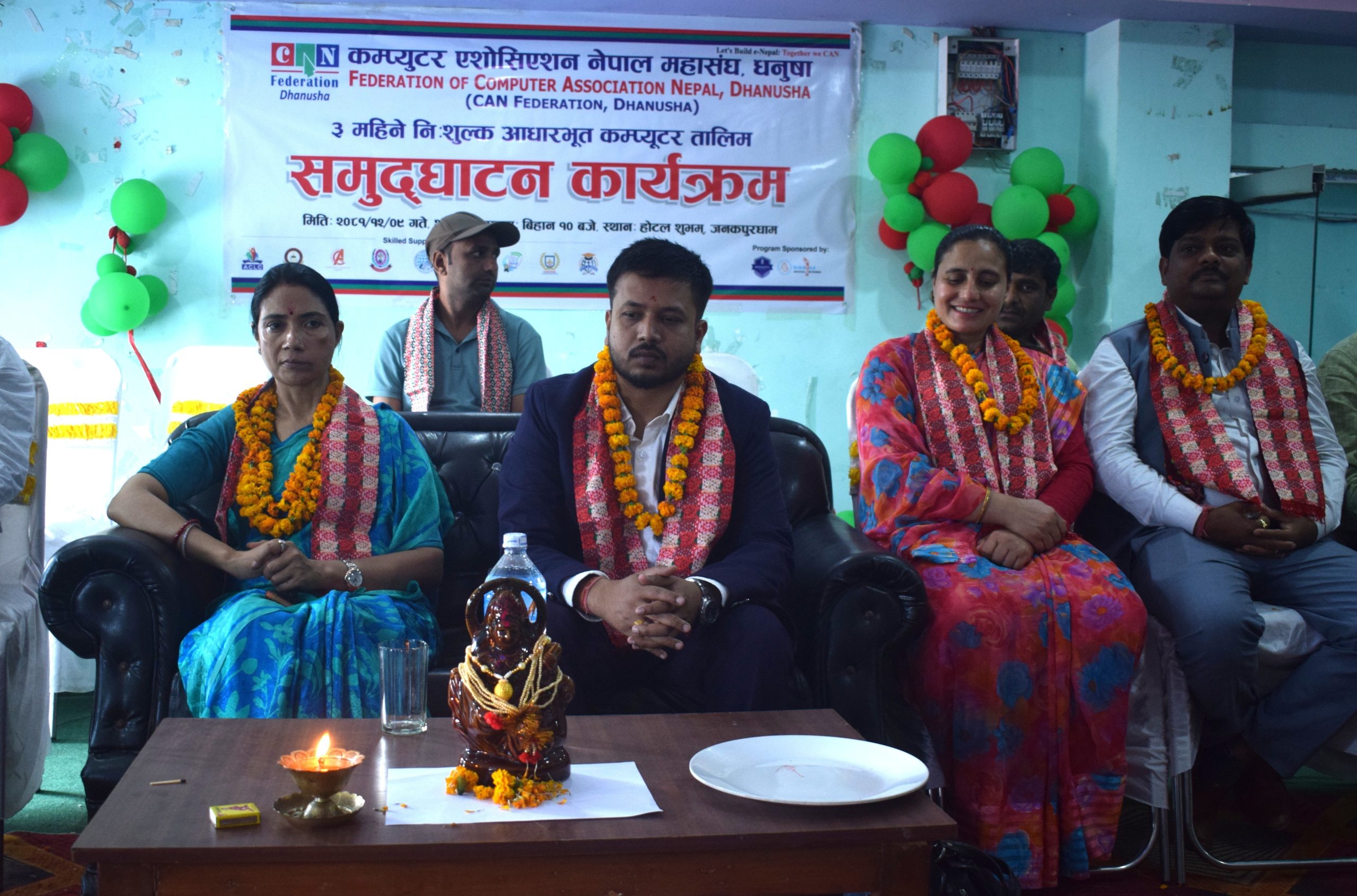 जनकपुरधाम, चैत ९ – कम्प्युटर एसोसिएसन नेपाल महासंघ, धनुषाको आयोजनामा ३ महिने निस्शुल्क आधारभूत कम्प्युटर तालिमको उद्घाटन कार्यक्रम जनकपुरको शुभम होटलमा सम्पन्न भएको छ। कार्यक्रममा प्रमुख अतिथि पूर्वमन्त्री जुली महतो रहनु भएको थियो भने केन्द्रीय सांसद प्रतीक्षा तिवारी तथा प्रदेश सभा सदस्य दिपेन्द्र ठाकुर विशिष्ट अतिथिका रूपमा उपस्थित हुनु भयो। कार्यक्रममा कम्प्युटर एसोसिएसन नेपाल महासंघ, धनुषाका अध्यक्ष विनय साहको अध्यक्षता रहेको थियो।