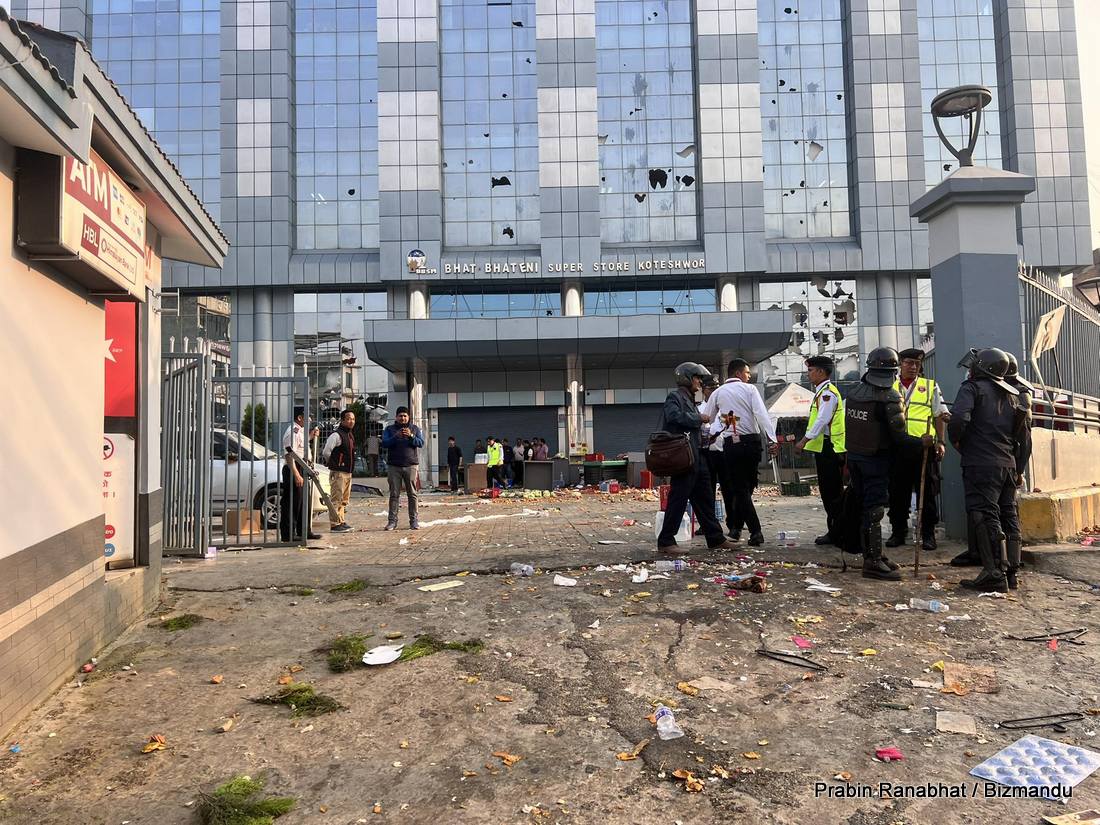 फ्रिजर तथा शोकेसको क्षति २ लाख ६५ हजार र नगद चोरी भएको ९४ हजार रुपैयाँसहित कुल ८० लाख ३३ हजार रुपैयाँ क्षतिको मूल्यांकन भएको हो । चैत १५ गते राजावादीको अराजक समूहले कोटेश्वरको भाटभटेनी स्टोरको भवन तोडफोड गर्नुका साथै लुटपाट मच्याएका थिए । लुटपाटका क्रममा मौज्दात सामानवापत सबैभन्दा बढी नोक्सानी पुगेको देखिएको छ । लुटपाटमा संलग्न केही पक्राउ परेका छन् । पक्राउ परेकालाई अदालतबाट म्याद थप गरी प्रहरीले अनुसन्धान गरिरहेको छ ।