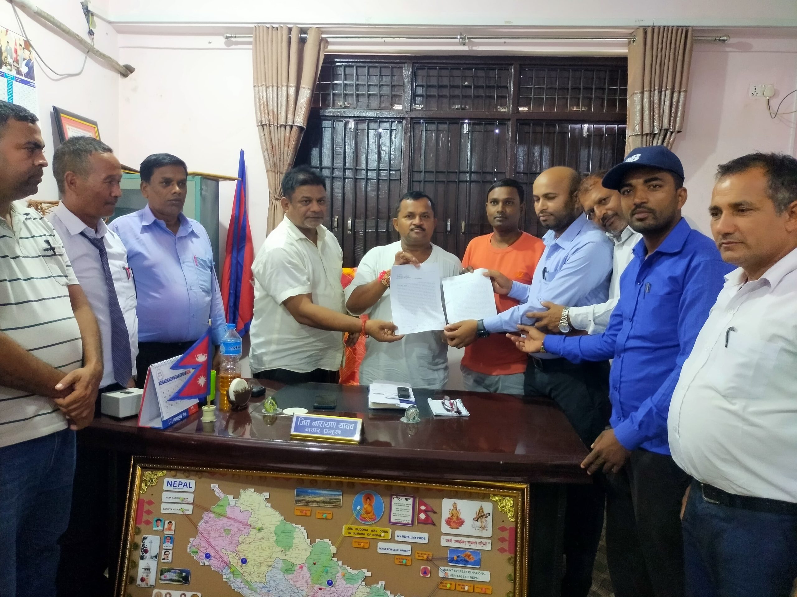 ज्ञापनपत्र बुझाउने टोलीमा नगर अध्यक्ष सरोज कुमार यादव, नगर सचिव आकाश कुमार यादव, नगर कोषाध्यक्ष अधिकलाल शर्मा, जिल्ला सदस्य किशोरी महतो, प्रदेश सदस्य पुर्ण बहादुर लामा, सदस्यहरू सन्जिप गोहिबार, देबनाथ साह, गोबिन्द पोखरेल, रामकुमार यादव, मदन लामा, विजय साह लगायतका विद्यालय संस्थापकहरू सहभागी थिए।
