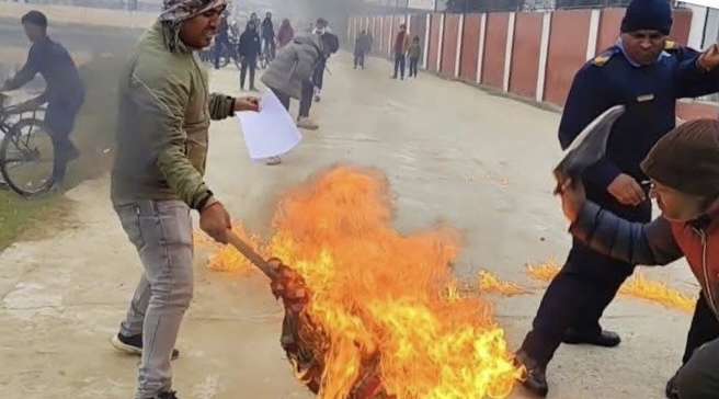 मगही भाषाका अभियानीद्वारा मुख्यमन्त्री र शिक्षामन्त्रीको पुतला दहन