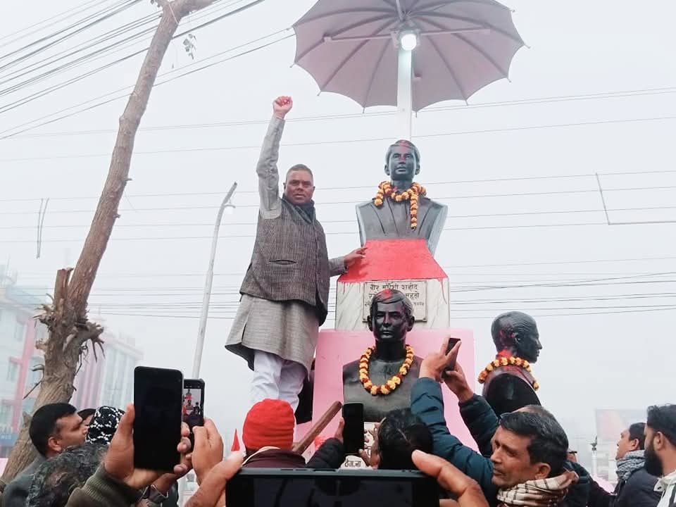 जसपा नेपालका युवा र विद्यार्थी शहिदहरुको शालिकमा माल्यार्पण।