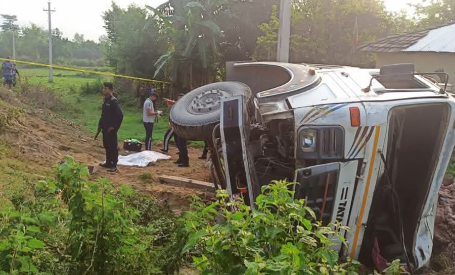 सिरहामा टिपर पल्टिंदा एक जनाको मृत्यु