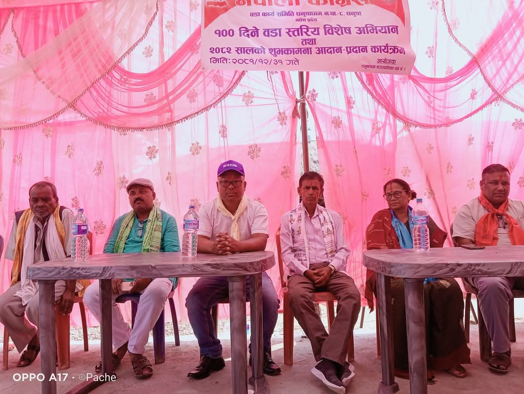 नेपाली कांग्रेस धनुषाधाम मा १०० दिने विशेष अभियान तथा नयाँ वर्ष २०८२ को शुभकामना कार्यक्रम सम्पन्न
